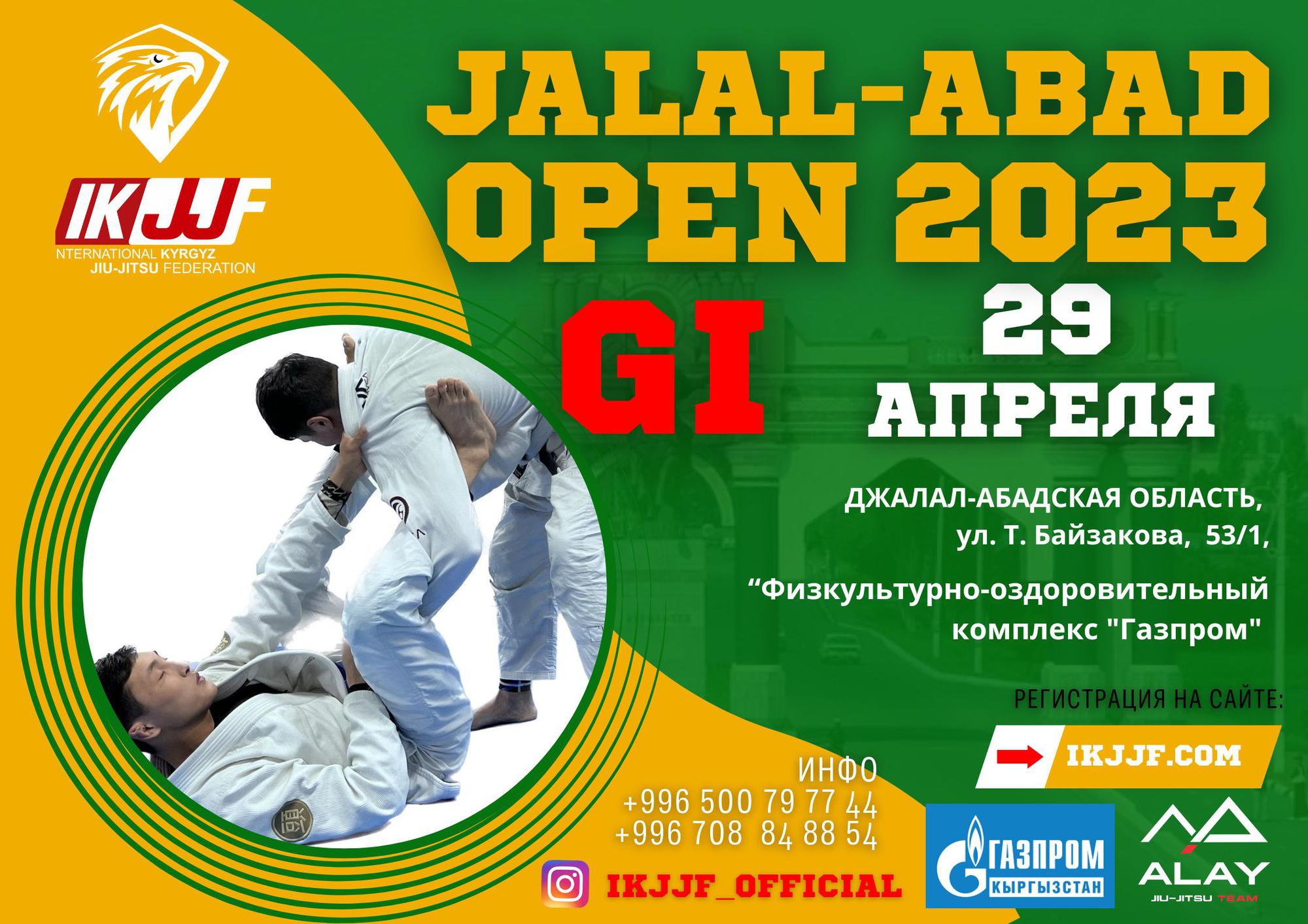 ОО «Международная Федерация джиу-джитсу Кыргызской Республики» приглашает Вас на Открытый турнир по джиу-джитсу “JALAL-ABAD OPEN JIU-JITSU GI 2023”, который состоится 29-го апреля 2023 года!