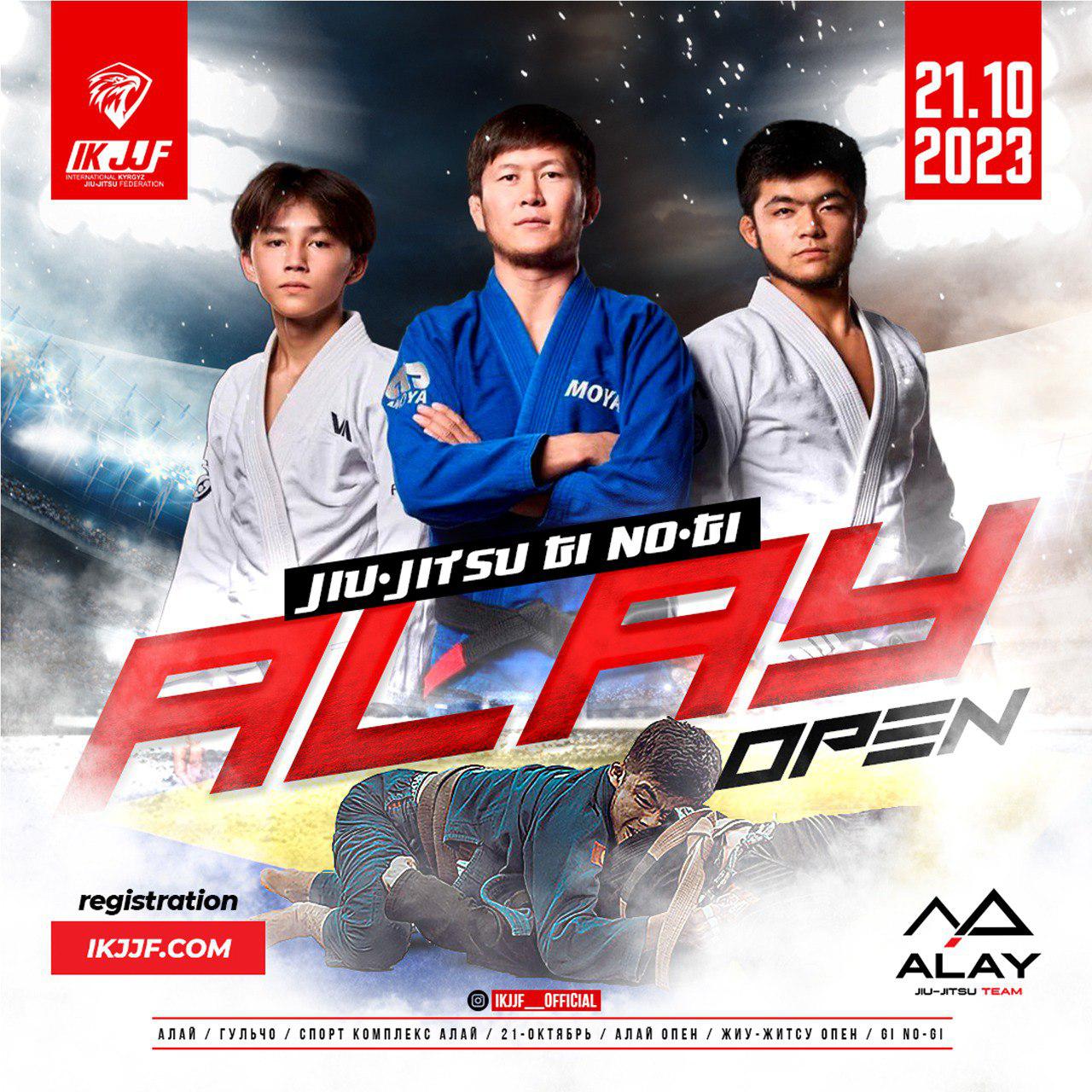 ОО «Международная Федерация джиу-джитсу Кыргызстана» совместно с ОО «Федерация джиу-джитсу Кыргызской Респуьлики» приглашает Вас на Открытый турнир по джиу-джитсу “ALAY OPEN JIU-JITSU GI, NO GI 2023”, который состоится 21-го октября 2022 года по всем возрастным категориям